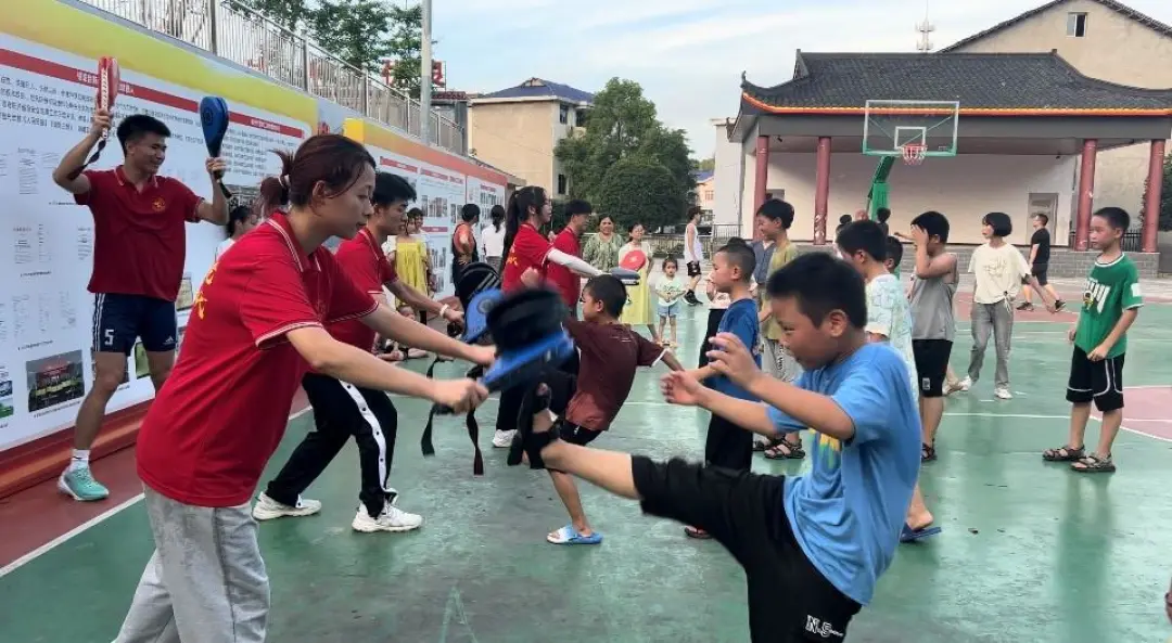 活动中,志愿者们发挥自身专业优势,开展乡村公益暑托班,教授小朋友篮球、跆拳道等体育项目,带领村民学习养生八段锦和花球啦啦操等,受到村民的广泛好评。“我们送体育下乡,老百姓喜闻乐见,学生也很受益。队员们白天带小朋友搞锻炼,晚上带阿姨搞扩展,每天都有60多名村民参加文体活动。”李瑾璇老师介绍说。
