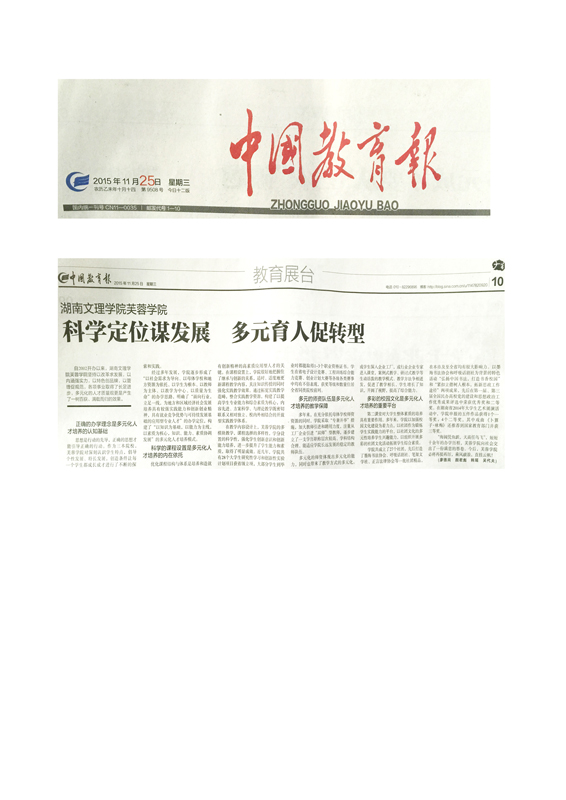 湖南文理学院芙蓉学院 科学定位谋发展 多元育人促转型 中国教育报 11月25日
