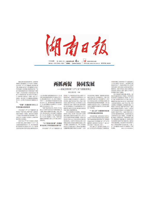两抓两促 协同发展——湖南文理学院三严三实工作侧记 湖南日报 12月4日