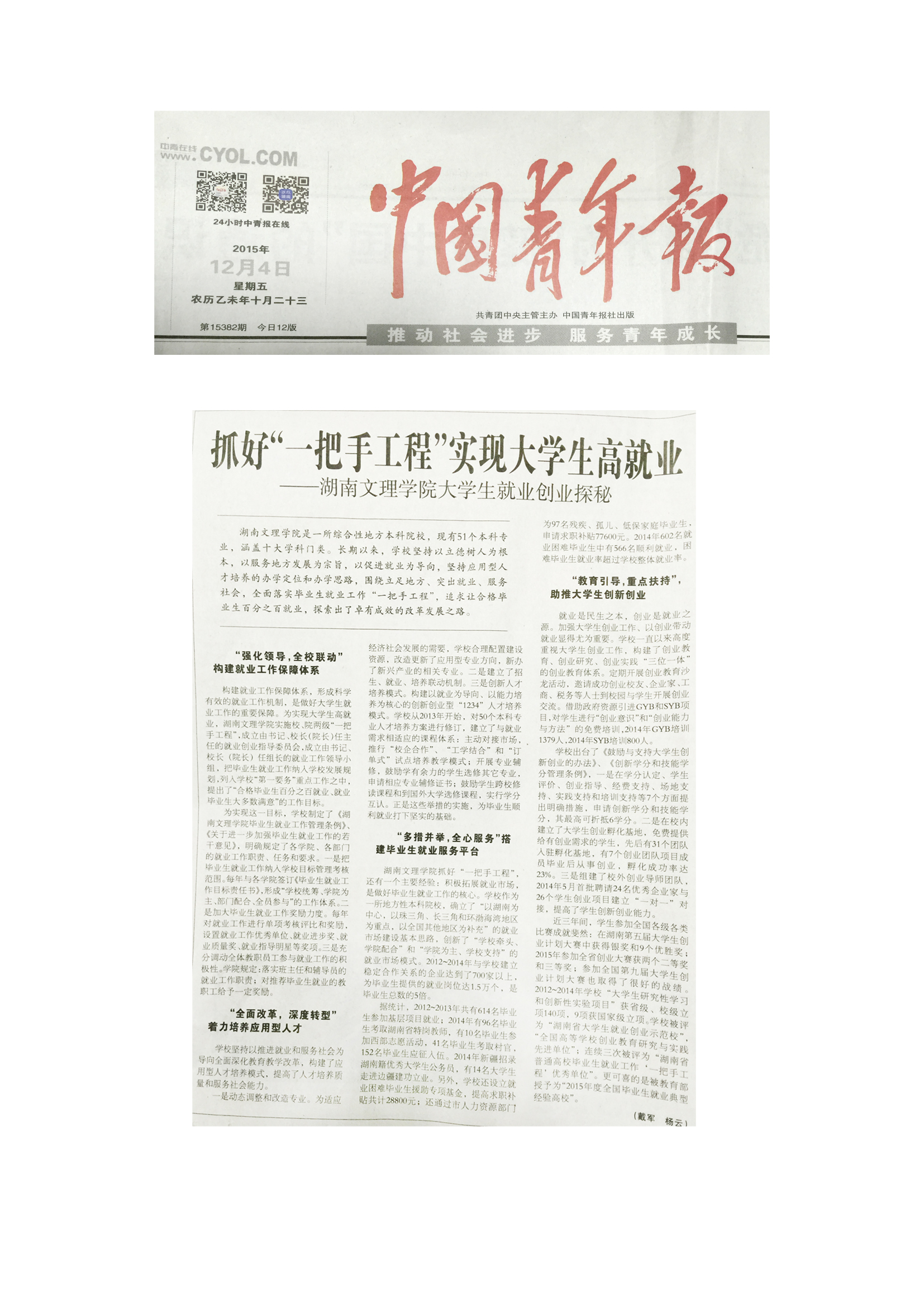 中国青年报:抓好“一把手工程”实现大学生高就业