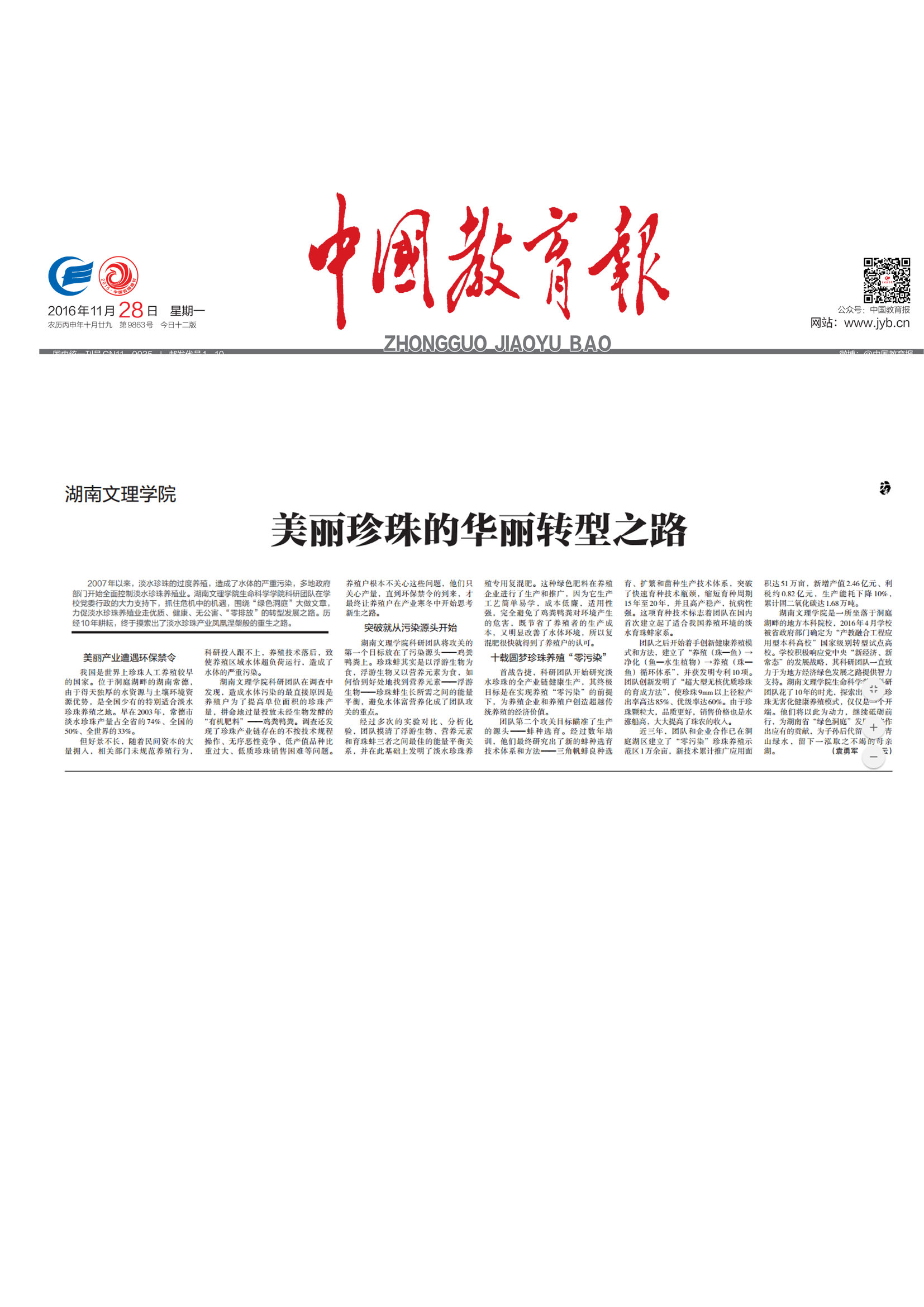 中国教育报:美丽珍珠的华丽转型之路 2016年11月28日
