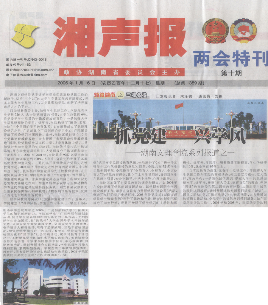 《湘声报》2006年1月16日:抓党建 兴学风--湖南文理学院系列报道之一