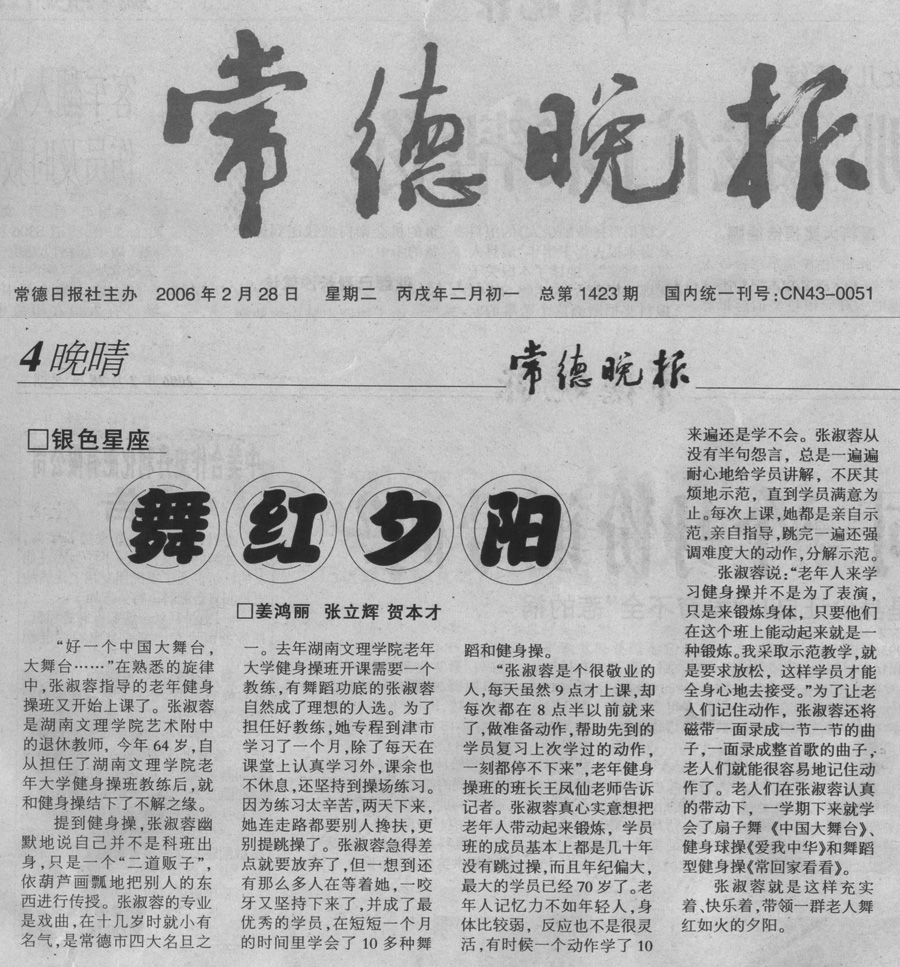 《常德晚报》2006年2月28日:舞红夕阳