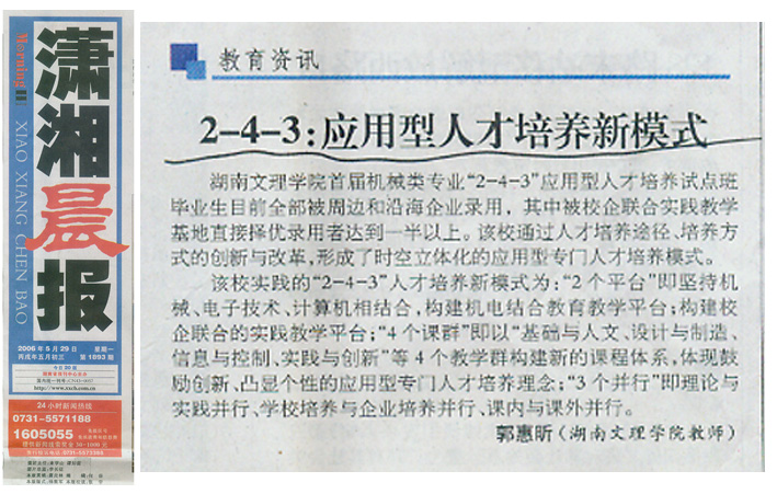 《潇湘晨报》2006年5月29日A12版:应用型人才培养新模式