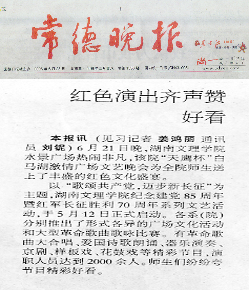 《常德晚报》2006年6月23日第5版:红色演出齐声赞好看