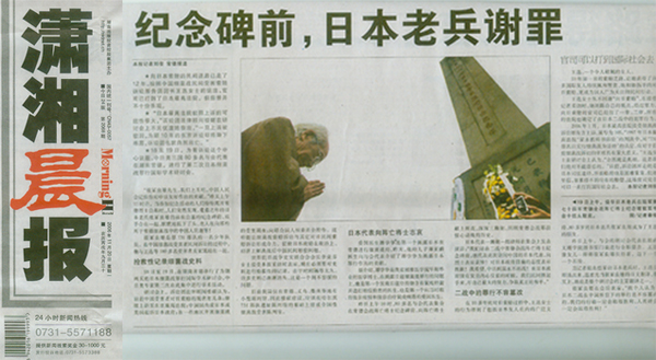 《潇湘晨报》2006年11月20日A04版:纪念碑前,日本老兵谢罪