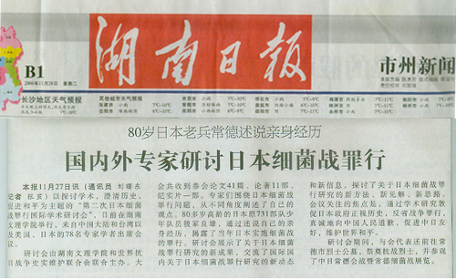 《湖南日报》2006年11月28日B1版:80岁日本老兵常德述说亲身经历