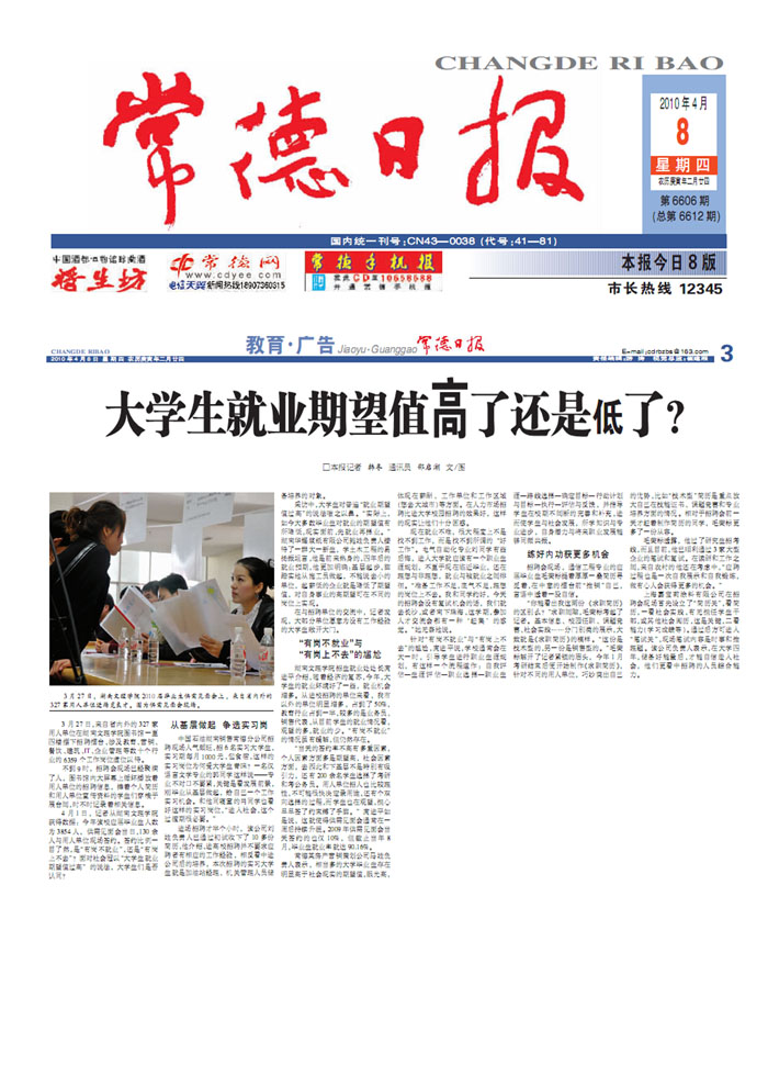 《常德日报》大学生就业期望值高了还是低了?