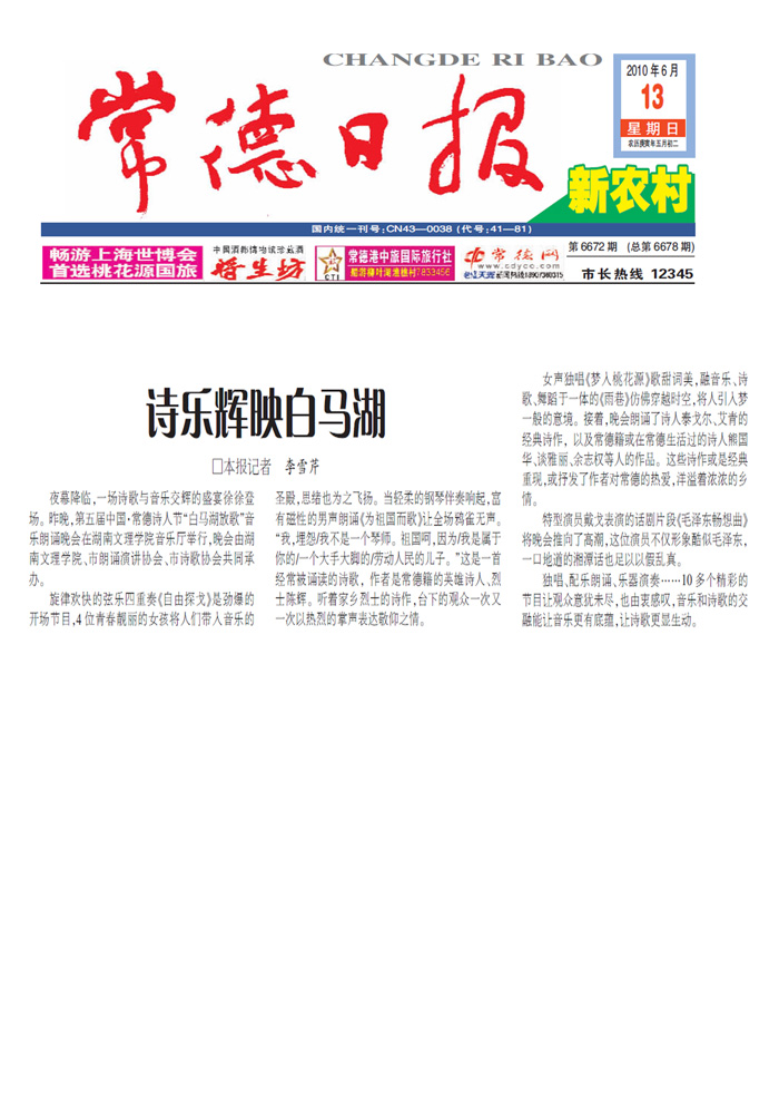 《常德日报》诗乐辉映白马湖