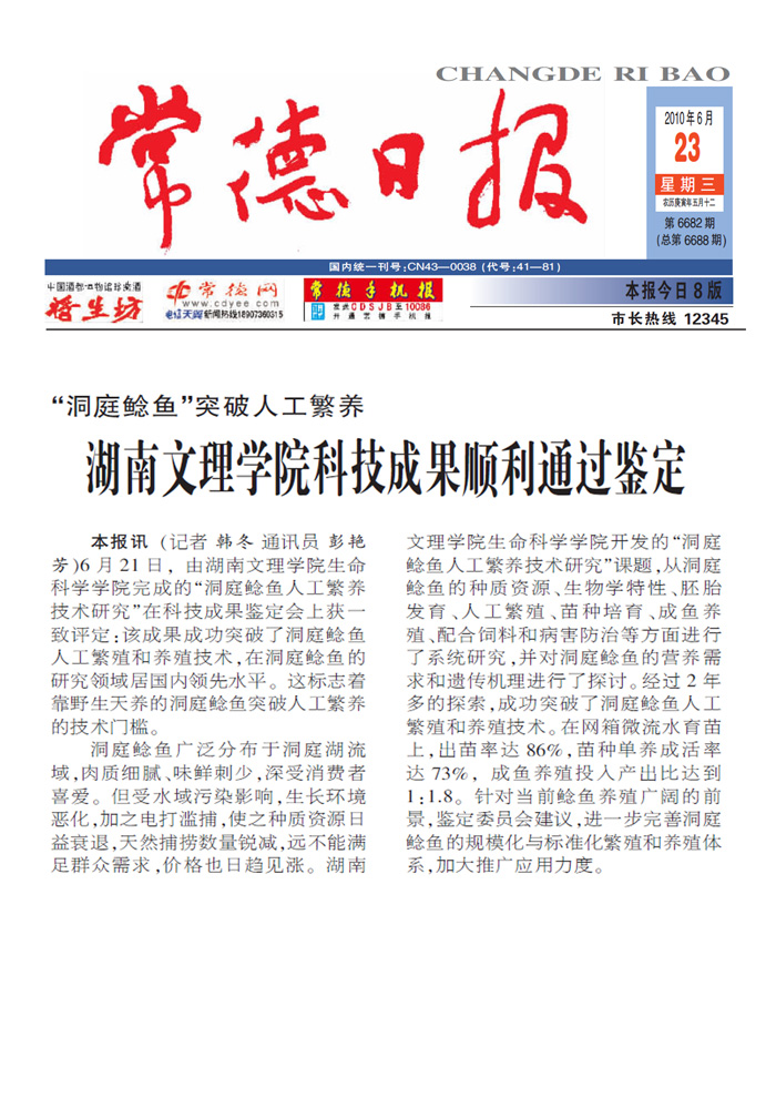 《常德日报》湖南文理学院科技成果顺利通过鉴定