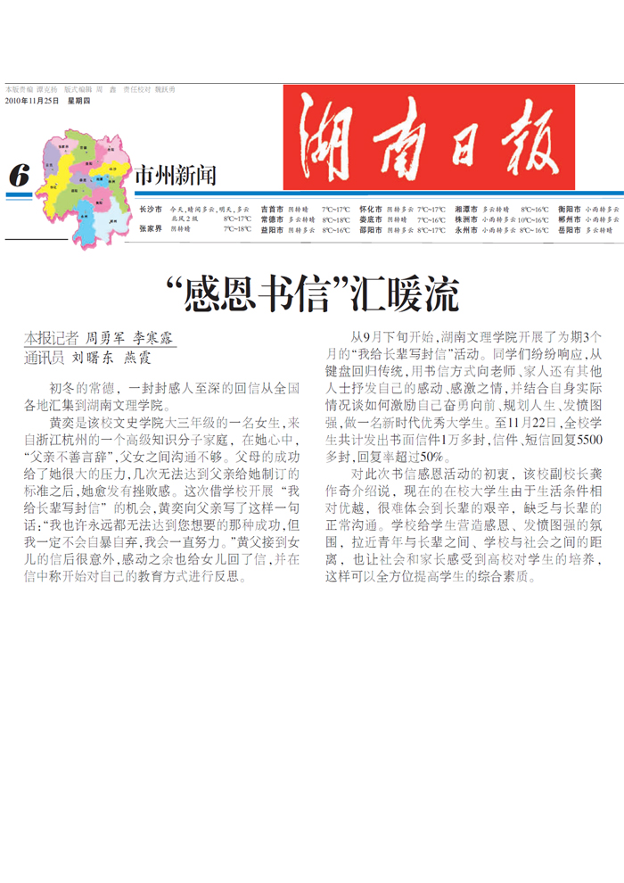 《湖南日报》“感恩书信”汇暖流