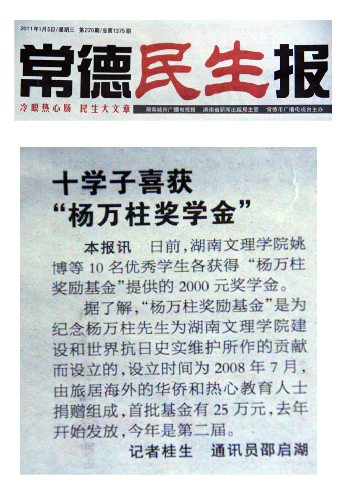《常德民生报》十学子喜获“杨万柱奖学金”
