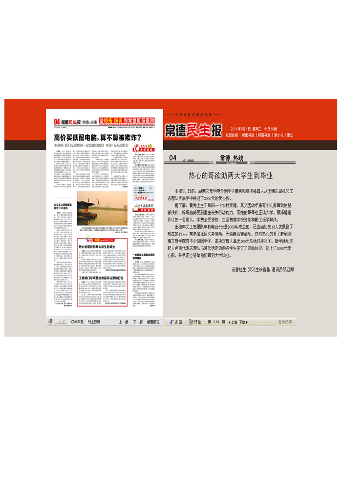 《常德民生报》热心的哥欲助两大学生到毕业