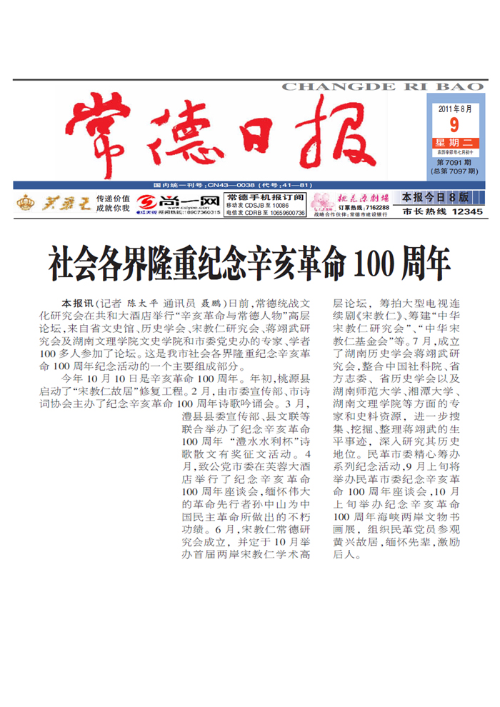 《常德晚报》社会各界隆重纪念辛亥革命100周年