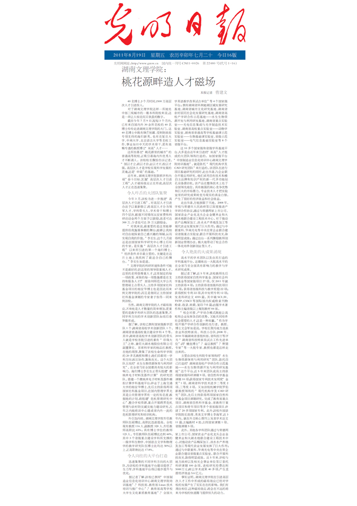《光明日报》湖南文理学院:桃花源畔造人才磁场