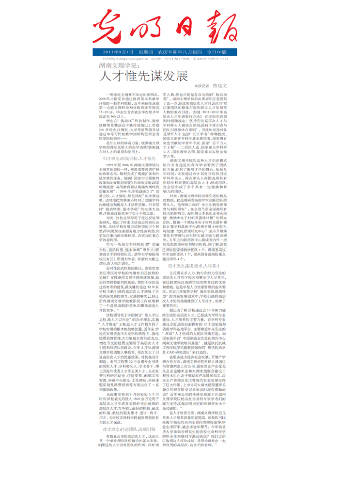 《光明日报》湖南文理学院:人才惟先谋发展