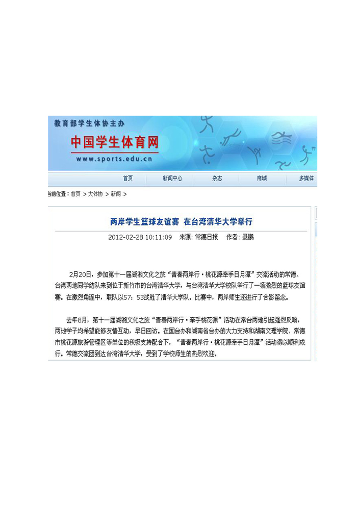 《中国学生体育网》:两岸学生篮球友谊赛在台湾清华大学举行