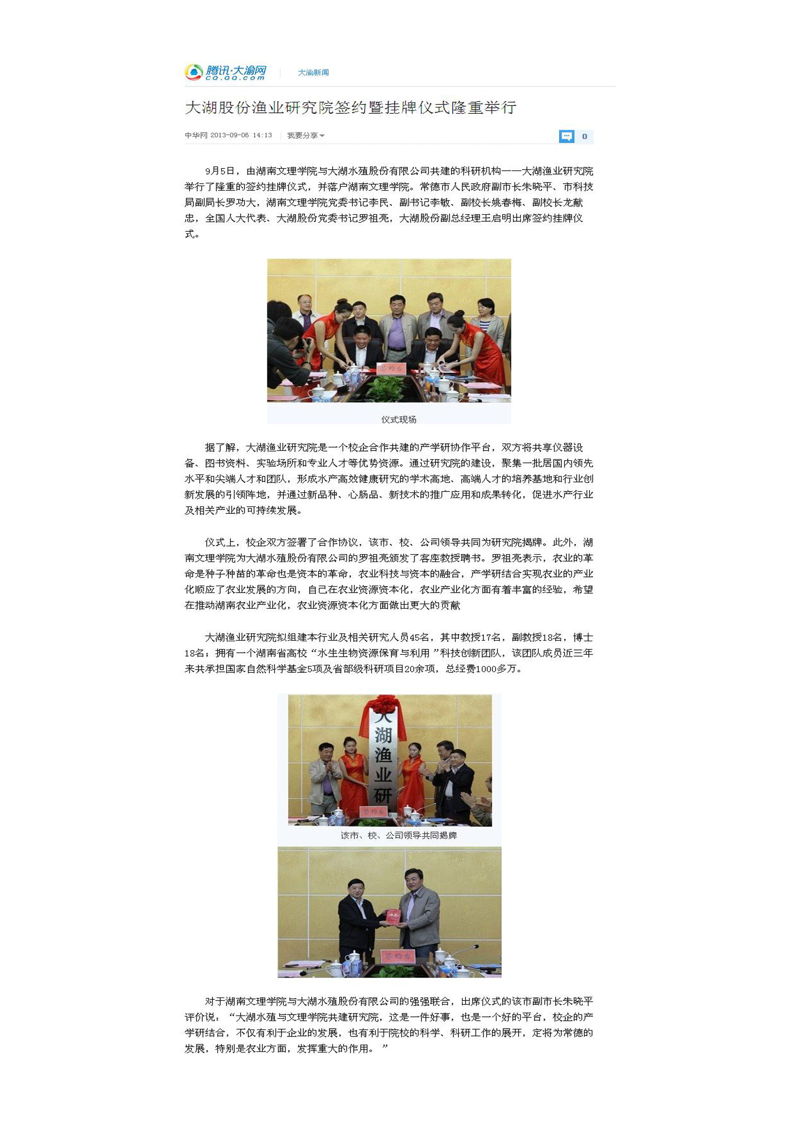 大湖股份渔业研究院签约暨挂牌仪式隆重举行 腾讯网