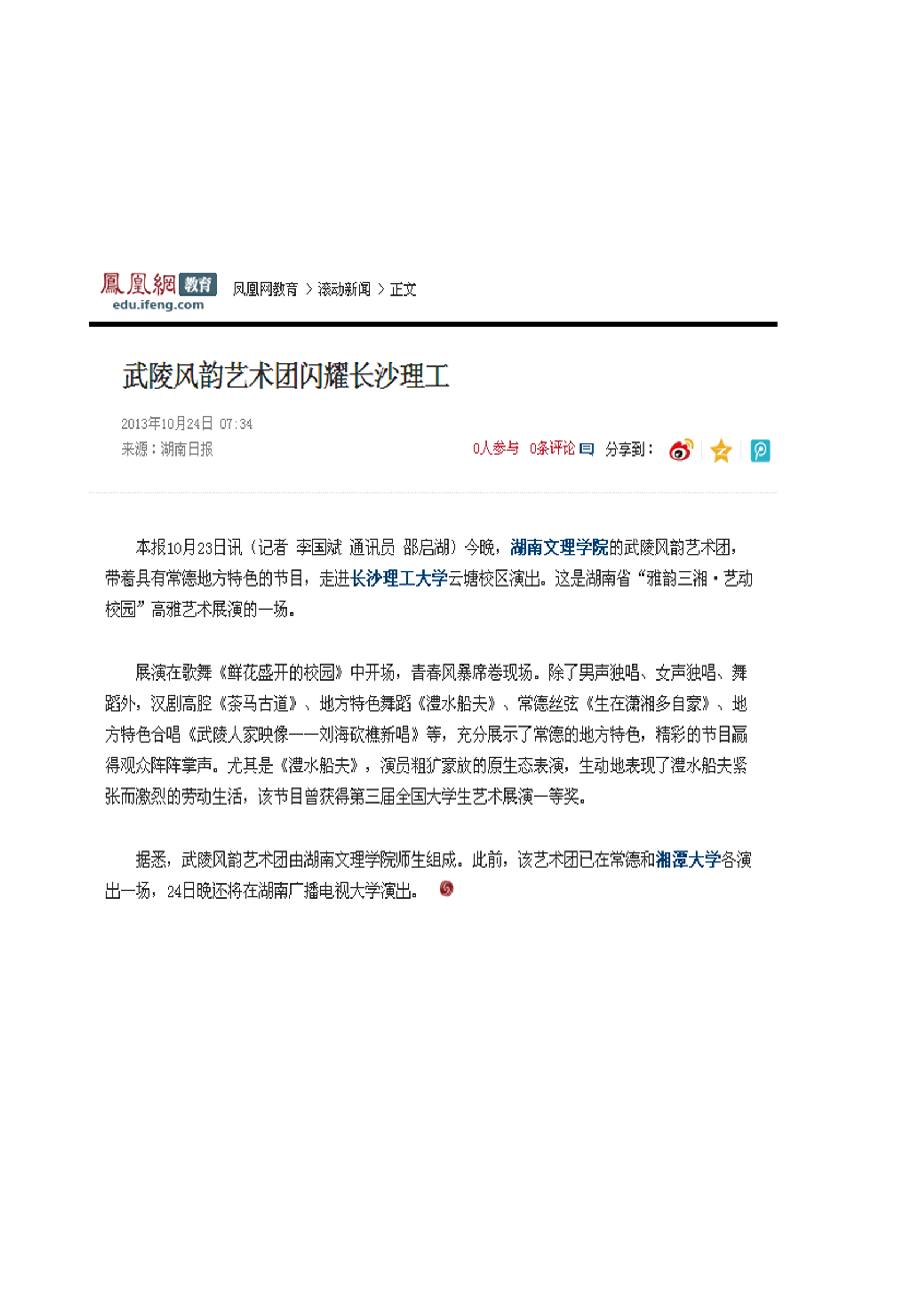 武陵风韵艺术团闪耀长沙理工 凤凰网