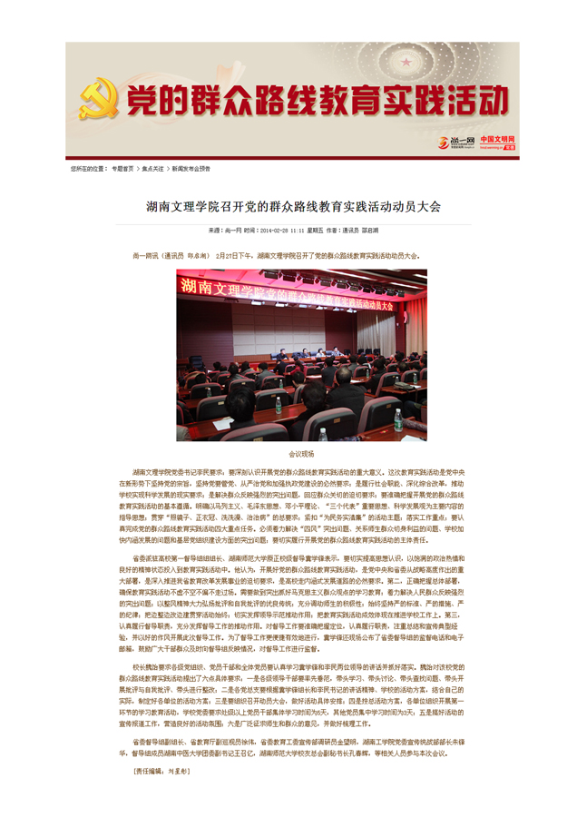 尚一网:湖南文理学院召开党的群众路线教育实践活动动员大会