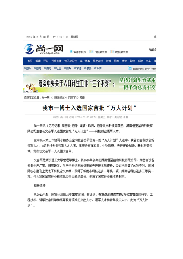 我市一博士入选国家首批“万人计划”