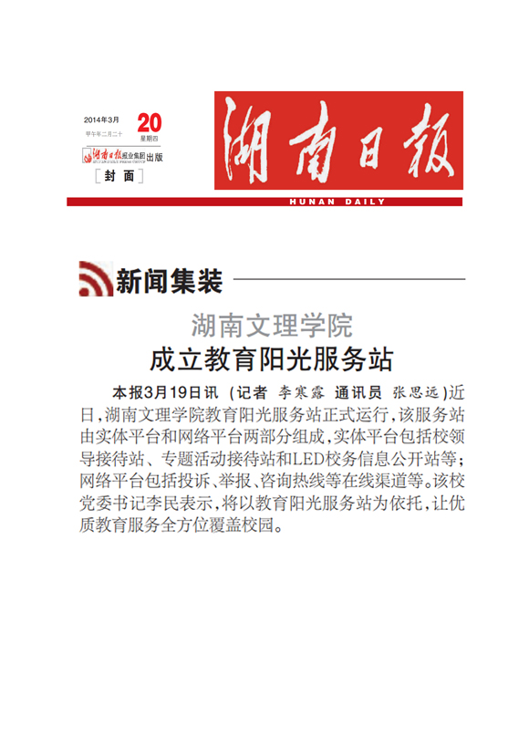 湖南日报:湖南文理学院成立教育阳光服务站