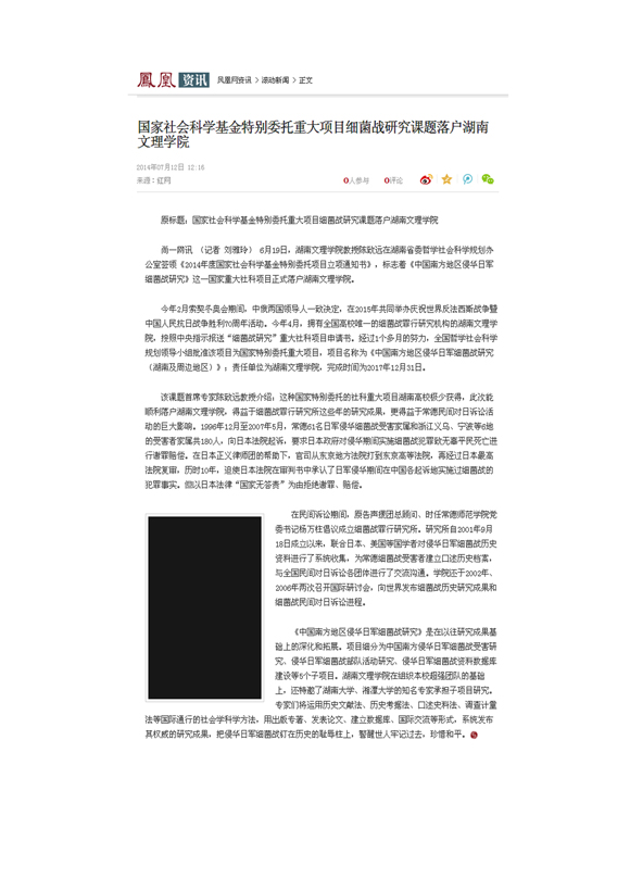凤凰网:国家社科基金特别委托重大项目落户湖南文理学院
