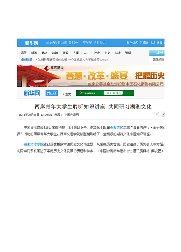 新华网:两岸青年大学生聆听知识讲座