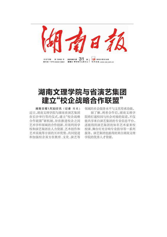 湖南日报:湖南文理学院与省演艺集团建立“校企战略合作联盟