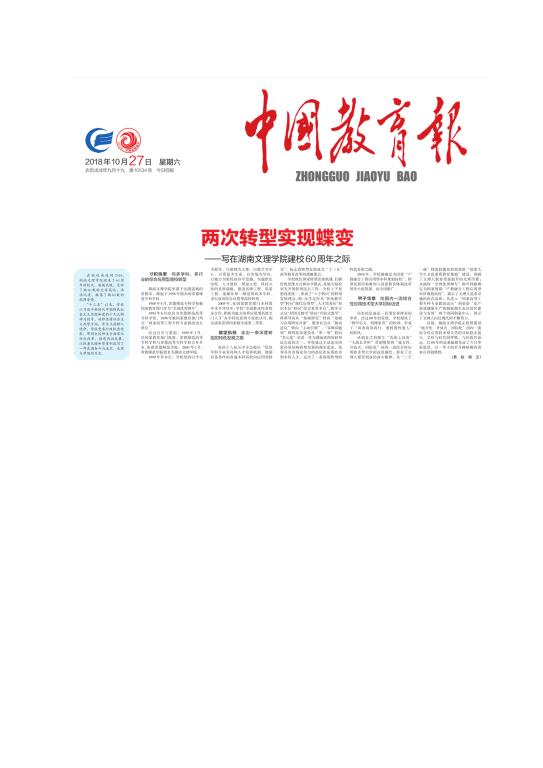 中国教育报:两次转型实现蝶变——写在湖南文理学院建校60周年之际
