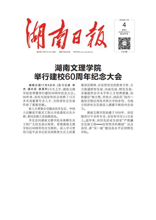 湖南日报:湖南文理学院举行建校60周年纪念大会