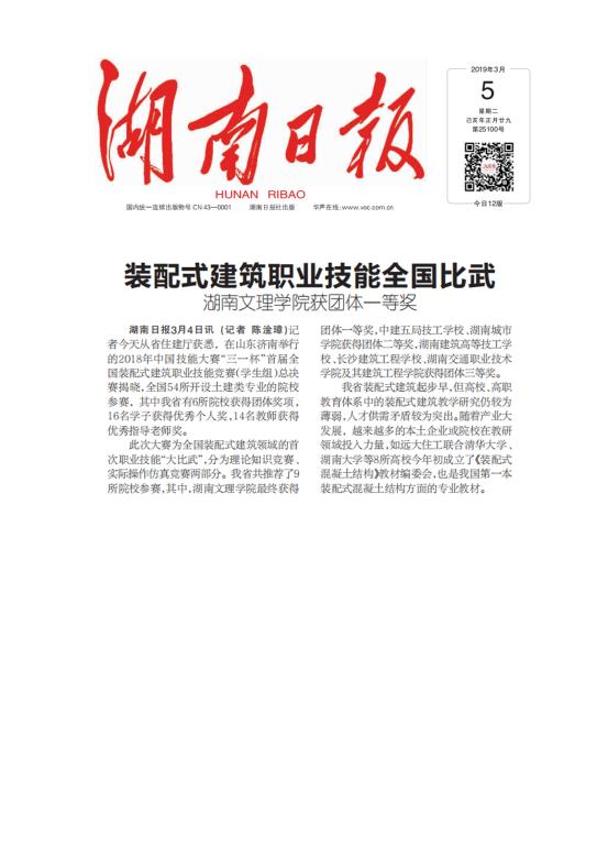 湖南日报:装配式建筑职业技能全国比武 湖南文理学院获团体一等奖