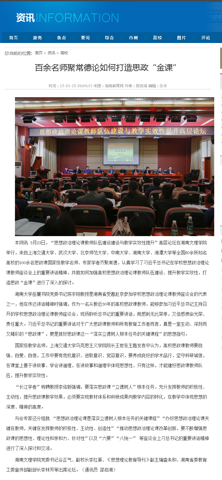 湖南教育网:百余名师聚常德论如何打造思政“金课”
