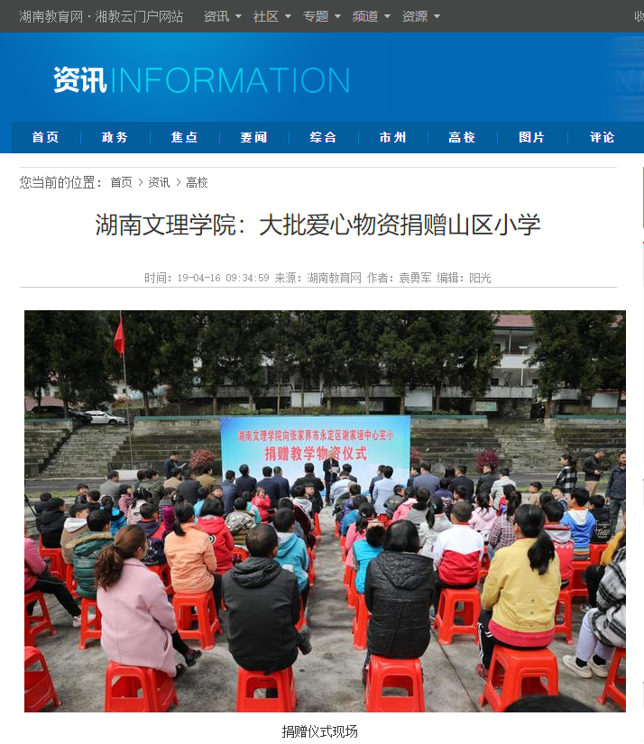湖南教育网:湖南文理学院大批爱心物资捐赠山区小学