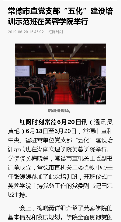 红网:常德市直党支部“五化”建设培训示范班在芙蓉学院举行
