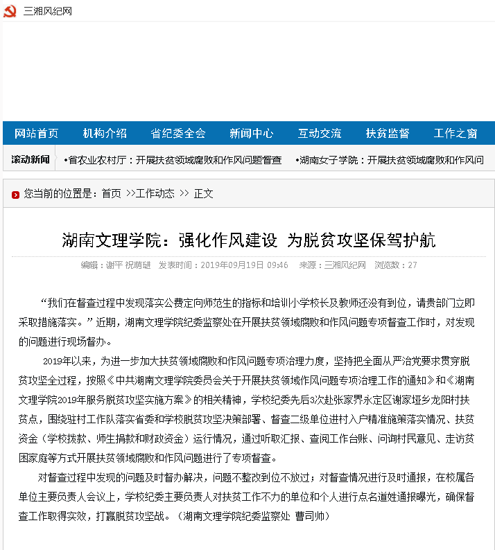 三湘风纪网:湖南文理学院 强化作风建设 为脱贫攻坚保驾护航