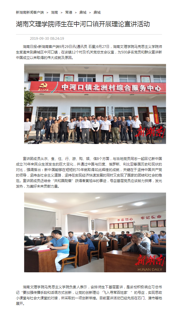 新湖南:湖南文理学院师生在中河口镇开展理论宣讲活动