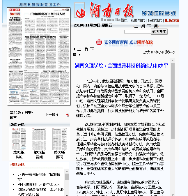 湖南日报:湖南文理学院 全面提升科技创新能力和水平