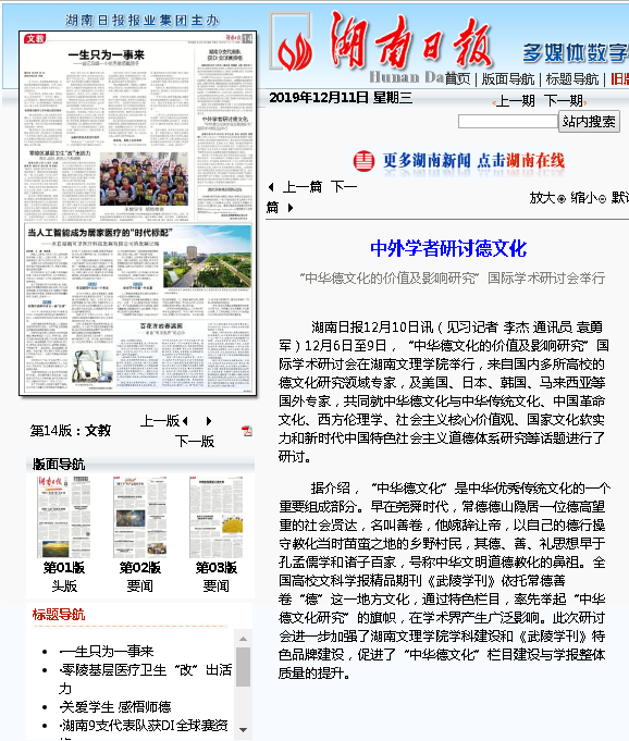 湖南日报:“中华德文化的价值及影响研究”国际学术研讨会举行