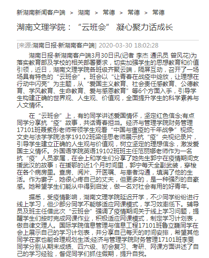 新湖南:我校召开“云班会” 凝心聚力话成长