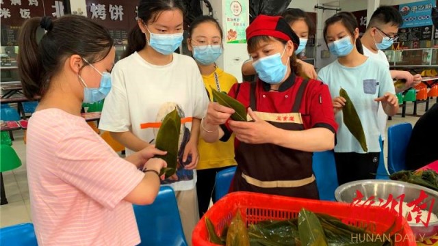 在大家的共同努力下,一个上午的时间,师生一起包了近2000个粽子。阿姨们把这些粽子上笼蒸熟后,端午节的清早就免费发放到千名学生手中,让学生离开家乡也能充分领会传统佳节所蕴含的历史底蕴和文化内涵。