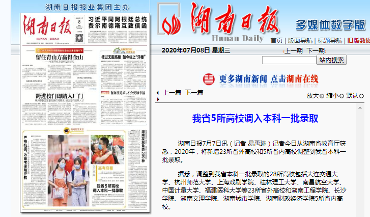 湖南日报:我省5所高校调入本科一批录取