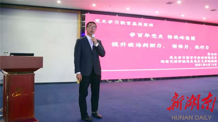 湖南日报·新湖南客户端4月14日讯(记者 鲁融冰 通讯员 黄平)4月14日,党史学习教育市委宣讲团走进常德高新区,先后在机关和企业开展专题宣讲。湖南文理学院马克思主义学院院长黄向阳教授作宣讲报告。