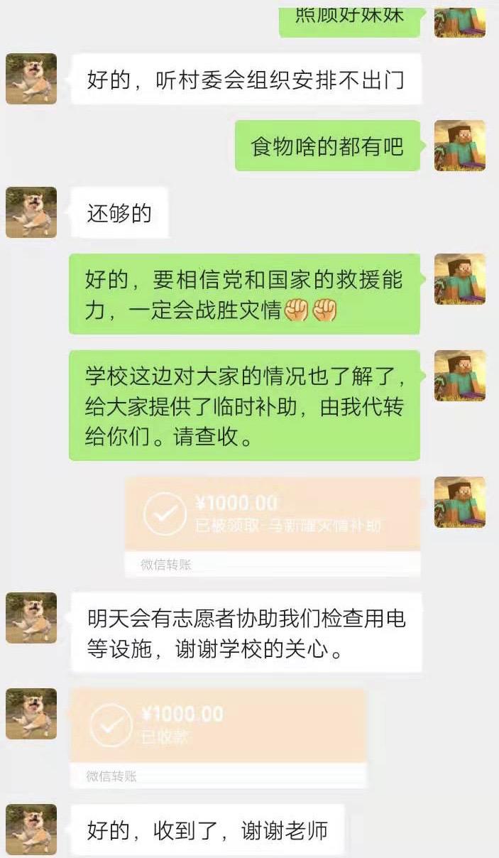 " 暴雨无情,学校有爱!真没想到班主任这么快就把 1000 元资助款转到了我的微信上,感谢学校对我和家人的关心与帮助。"7 月 22 日,湖南文理学院河南郑州籍学生王乙多表达了对学校的感谢之情。