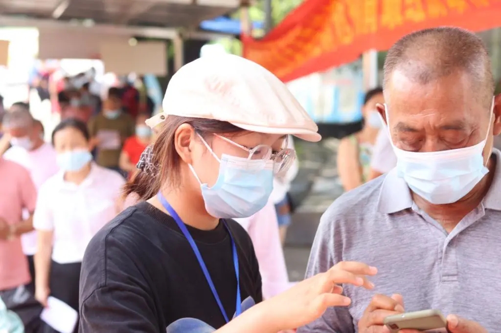 7月30日,计电学院留校的志愿者响应社区和学校的号召在艺术中心进行全员核酸检测。志愿者们完成检测后,发现现场健康码检查,秩序维持工作量巨大,于是大家决定留在艺术中心帮助工作人员查验健康码、维持疏导现场秩序。