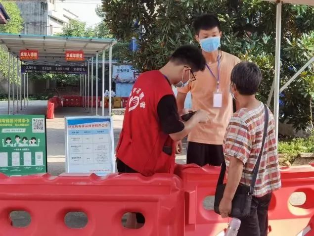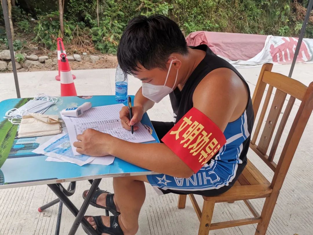 湖南文理学院体育学院社体18101班的彭涛,作为一名预备党员,在面对突然其来的疫情爆发,他毅然决然选择加入株洲市茶陵县疫情防控志愿者的队伍,在志愿工作的三天中,每天为居民测量体温,查验健康码,登记出入信息,宣传疫情防控信息,在这几天经历了高温酷暑,也经历了暴雨大风的天气,咬咬牙也坚持了下来。