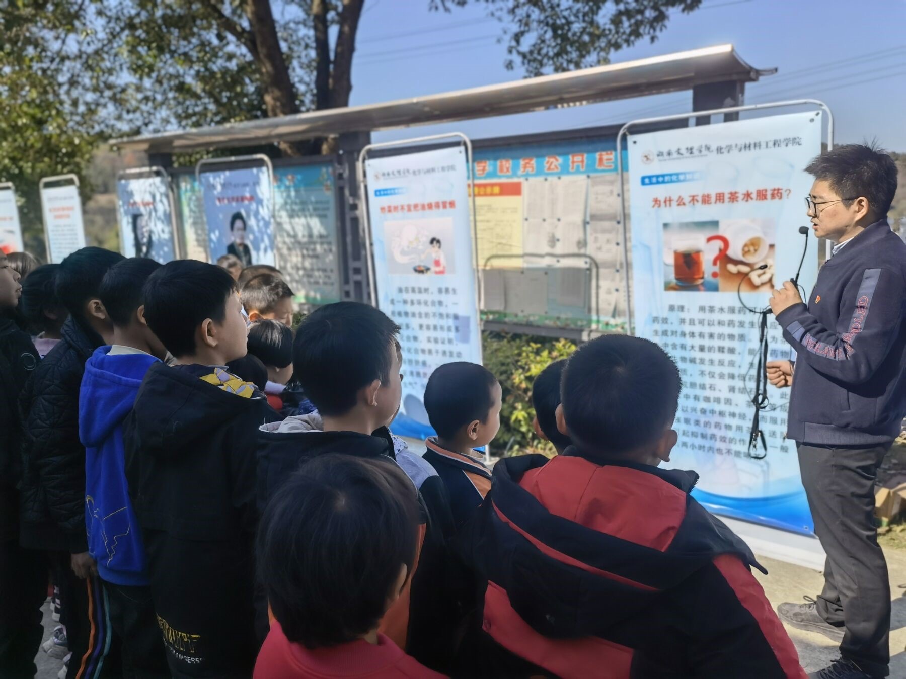 为了激发山区孩子的科学兴趣,老师们还特意带去了小学生们喜爱的科普知识书籍、画册和化学科普知识小展板。展板上,“赤潮”“水滴石穿”等自然现象的奥秘,侯德榜、屠呦呦等化学大师的成长故事,让孩子们久久不愿离开。“炒菜时油为什么不能烧得冒烟”等生活科学常识更是激发了孩子们莫大的求知欲望……