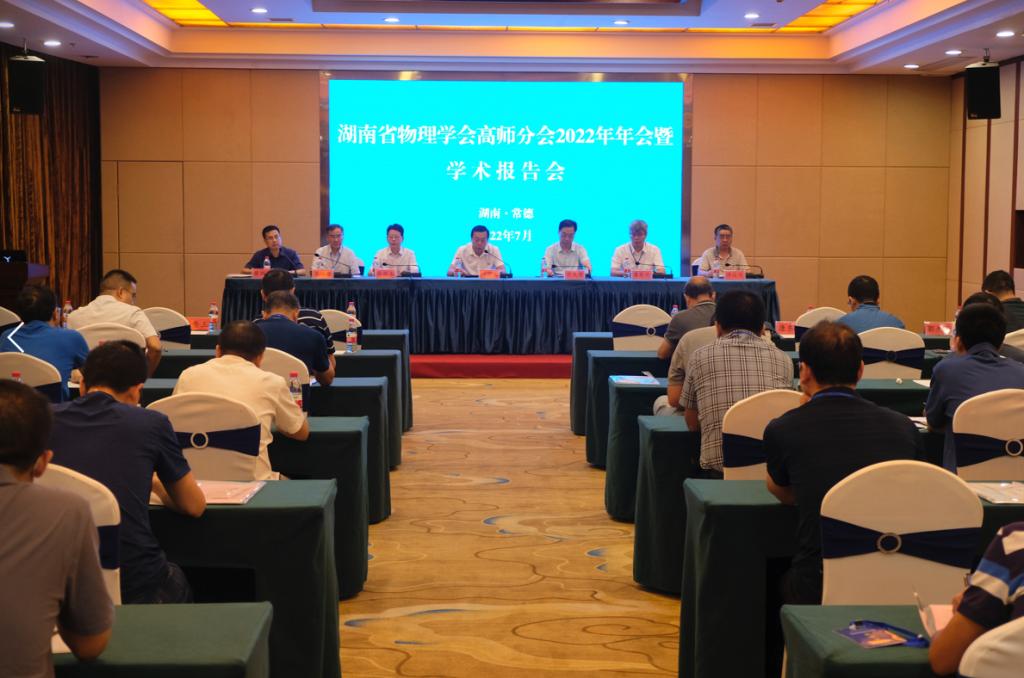 本网讯(通讯员 颜子豪)为展示湖南省高校物理学科的教学科研成果,促进会员单位之间的学术研究和教学改革经验交流,进一步提高物理教学水平,7月9日上午,由我校承办的湖南省物理学会高师分会2022年年会暨学术报告会在常德举行。湖南省物理学会高师分会理事会理事长张登玉,我校党委副书记、校长刘宇文出席会议。开幕式由我校数理学院院长蔡剑华主持。