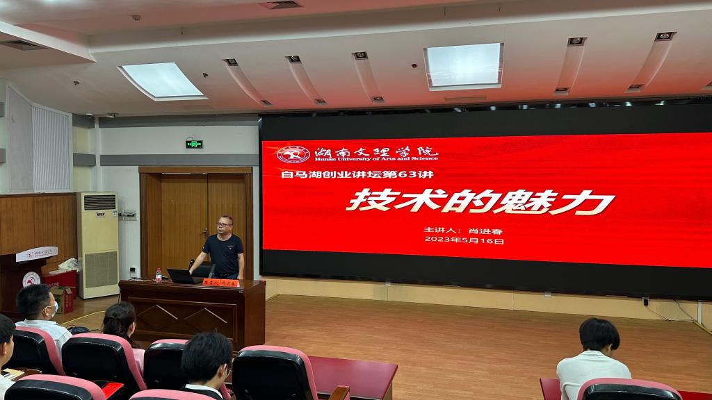 本网讯(通讯员 曹翠芳)5月16日下午,化材学院邀请2023年全国五一劳动奖章获得者、常德力元新材料有限责任公司技术部部长肖进春在我校图书馆报告厅作了题为《技术的魅力》专题报告。化材学院全体班子成员、化学和材料专业部分师生代表参加报告会。