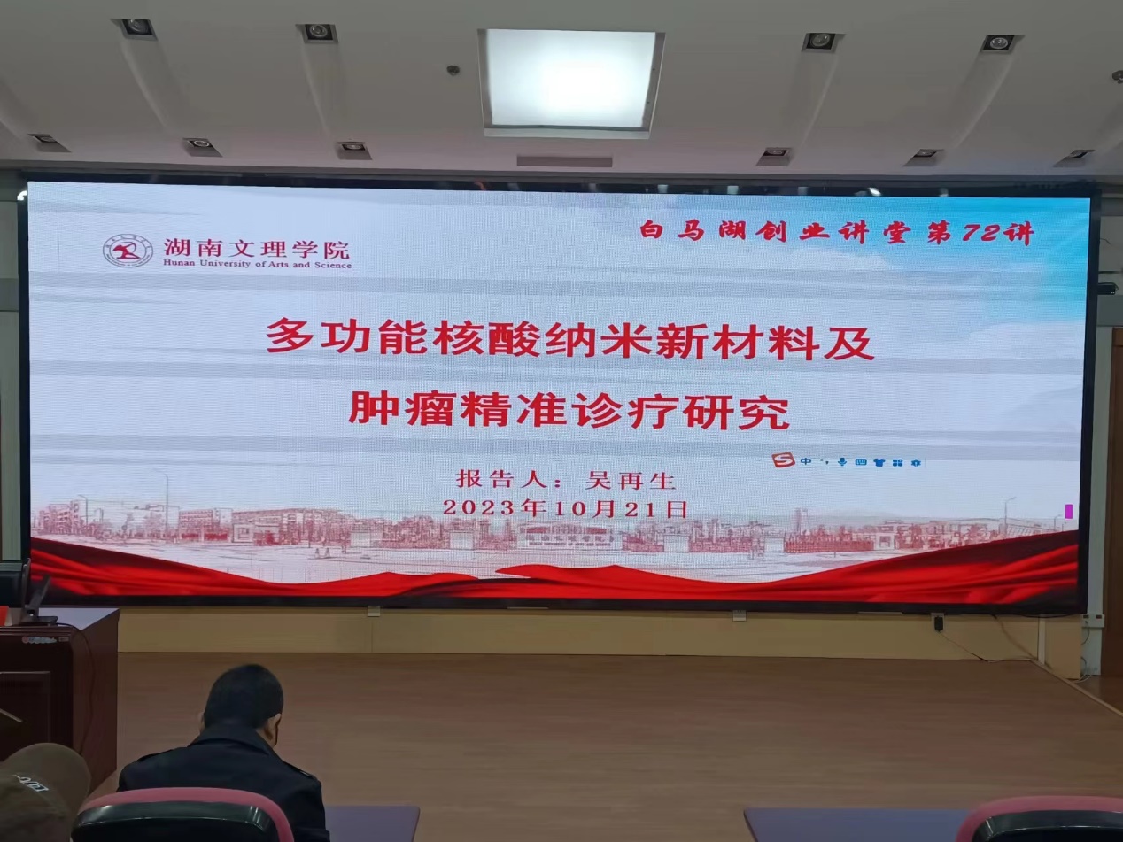 报告会上,吴再生教授重点介绍了团队近年来在核酸纳米机器、细胞成像探针、精准纳米医药和化学生物传感四个方面取得的研究成果和科研成果转化经验,并分享了自己的成功之路,包括初心理想、勇毅学习、提高效率、精打细算、特色专长、专业挚爱、强健体魄和懂得感恩的八条秘籍。吴再生教授的使命担当意识与科研精神深深感染了在座的师生,同学们纷纷表示,要向优秀学长学习,用奋斗点亮青春、梦想成就未来。(一审 易姣 二审 杨静 三审 袁勇军)